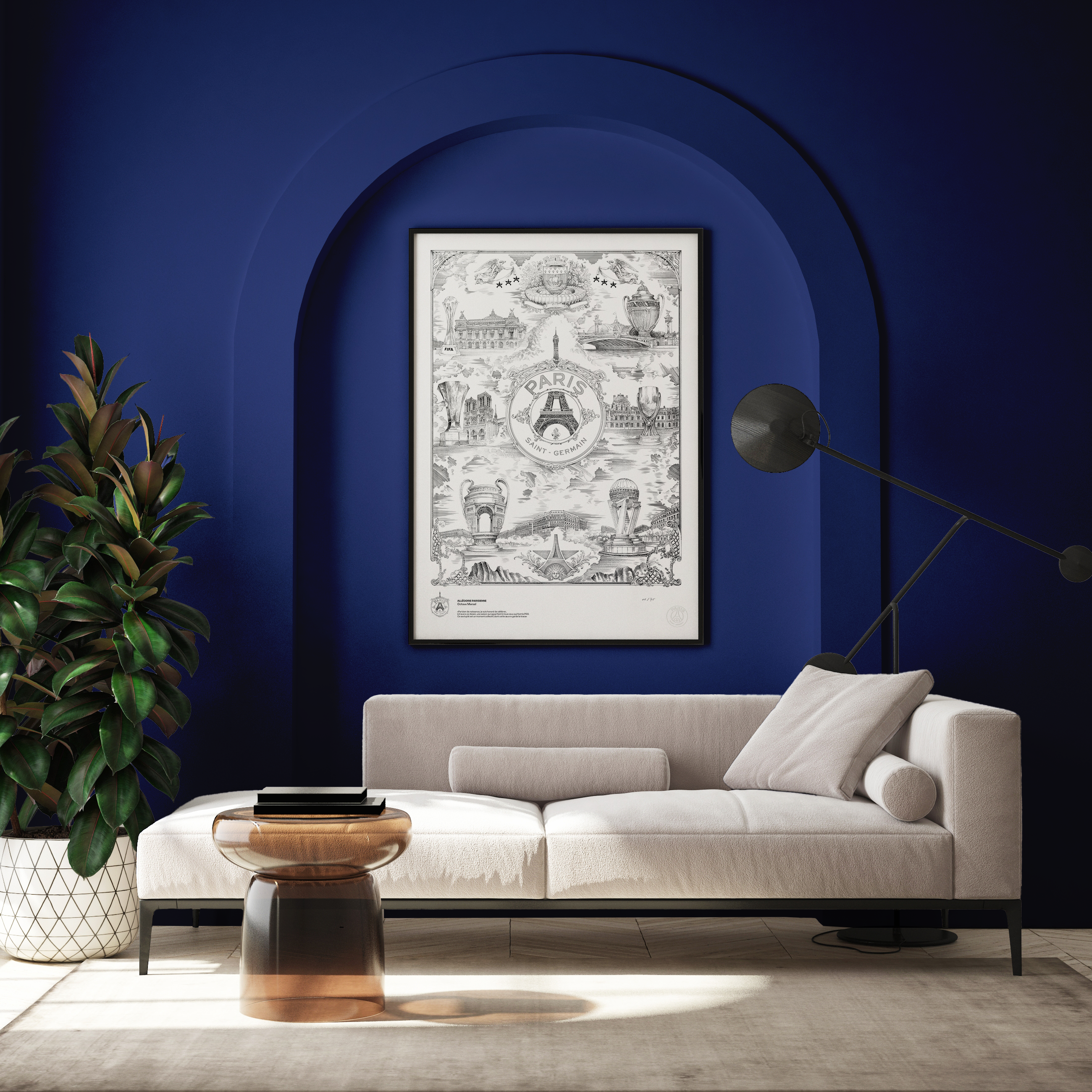 Affiche PSG - Allégorie Parisienne sur fond bleu par Octave Marsal